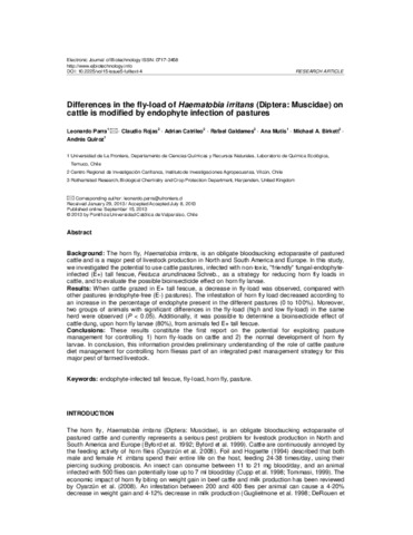 Differences in the fly-load of Haematobia irritans (Diptera: Muscidae) on cattle is modified by endophyte infection of pastures.