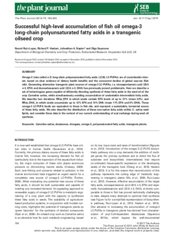 | Additional information | [Ruiz-Lopez, Noemi; Haslam, Richard P.; Napier, Johnathan A.; Sayanova, Olga] Rothamsted Res, Dept Biol Chem & Crop Protect, Harpenden AL5 2JQ, Herts, England |