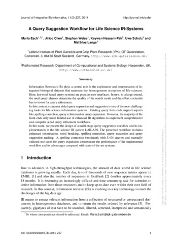 A query suggestion workflow for life science IR-systems