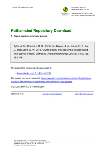 | Additional information | [Tyler, Adam M.; Lu, Chungui; Lycett, Grantley W.] Univ Nottingham, Loughborough, Leics, England; [Bhandari, Dhan G.; Poole, Mervin] Campden BRI, Chipping Campden, Glos, England; [Napier, Johnathan A.; Jones, Huw D.] Rothamsted Res, Harpenden, Herts, England |
