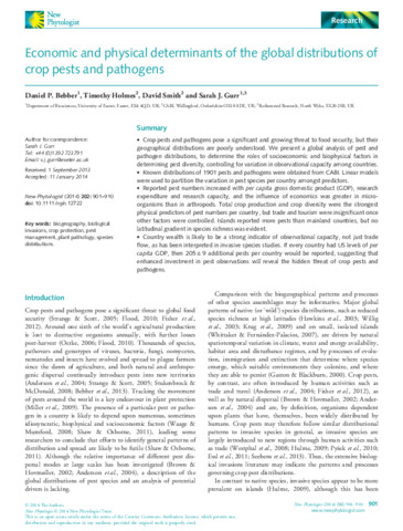 Economic and physical determinants of the global distributions of crop pests and pathogens