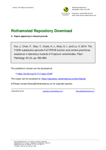 | Additional information | [Fan, J.; Chen, F.; Diao, Y.; Liu, X.] China Agr Univ, Dept Plant Pathol, Beijing 100193, Peoples R China; [Fan, J.] Chinese Acad Agr Sci, Inst Plant Protect, State Key Lab Biol Plant Dis & Insect Pests, Beijing 100193, Peoples R China; [Chen, F.] Fujian Agr & Forestry Univ, Inst Plant Virol, Key Lab Plant Virol Fujian Prov, Fuzhou 350002, Peoples R China; [Cools, H. J.] Rothamsted Res, Dept Biol Chem & Crop Protect, Harpenden AL5 2JQ, Herts, England; [Kelly, S. L.] Swansea Univ, Inst Life Sci, Swansea SA2 8PP, W Glam, Wales; [Kelly, S. L.] Swansea Univ, Coll Med, Swansea SA2 8PP, W Glam, Wales |