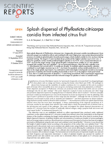 Splash dispersal of Phyllosticta citricarpa conidia from infected citrus fruit