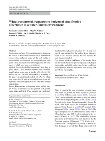 Jin, K., Shen, J., Ashton, Rhys, , White, R. P., Dodd, I. C., Parry, Martin and Whalley, Richard
