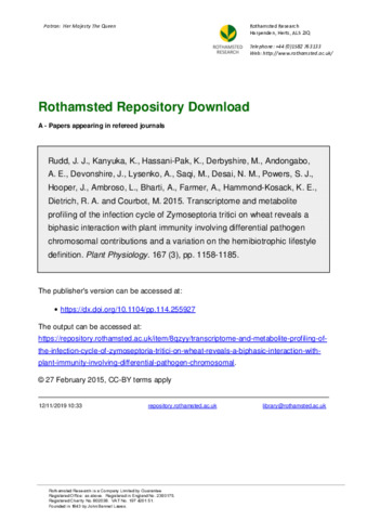 Transcriptome and metabolite profiling of the infection cycle of Zymoseptoria tritici on wheat reveals a biphasic interaction with plant immunity involving differential pathogen chromosomal contributions and a variation on the hemibiotrophic lifestyle definition