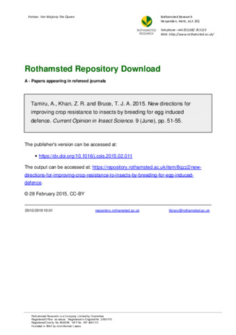 New directions for improving crop resistance to insects by breeding for egg induced defence