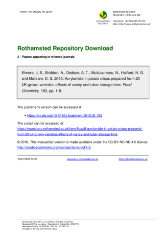 Acrylamide in potato crisps prepared from 20 UK-grown varieties: effects of variey and tuber storage time.