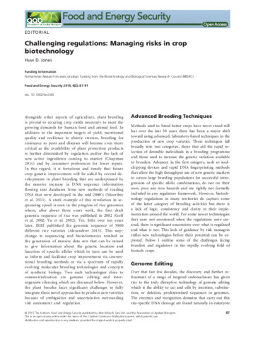Challenging regulations: managing risks in crop biotechnology