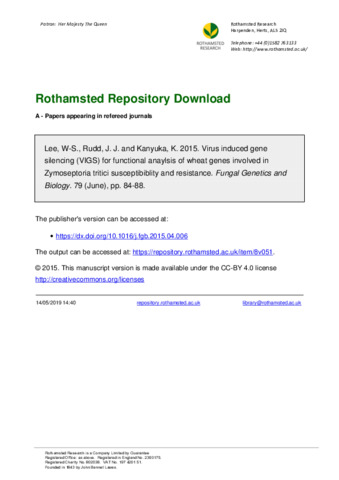 Virus induced gene silencing (VIGS) for functional anaylsis of wheat genes involved in Zymoseptoria tritici susceptibiblity and resistance