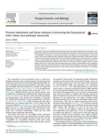 Previous bottlenecks and future solutions to dissecting the Zymoseptoria tritici -wheat host-pathogen interaction.