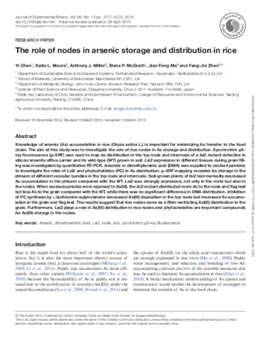 The role of nodes in arsenic storage and distribution in rice.