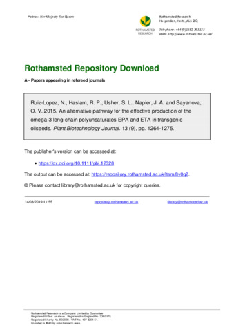 | Additional information | [Ruiz-Lopez, Noemi; Haslam, Richard P.; Usher, Sarah; Napier, Johnathan A.; Sayanova, Olga] Rothamsted Res, Dept Biol Chem & Crop Protect, Harpenden, Herts, England; [Ruiz-Lopez, Noemi] CSIC, Inst Grasa, E-41080 Seville, Spain |