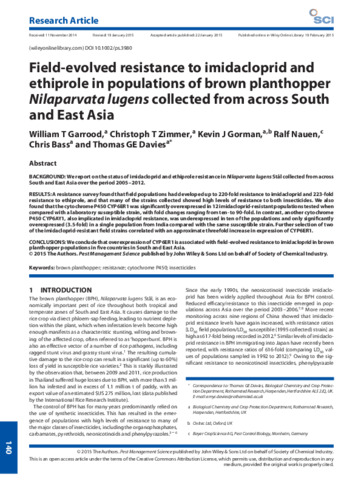 | Additional information | [Garrood, William T.; Zimmer, Christoph T.; Gorman, Kevin J.; Bass, Chris; Davies, Thomas G. E.] Rothamsted Res, Biol Chem & Crop Protect Dept, Harpenden AL5 2JQ, Herts, England; [Gorman, Kevin J.] Oxitec Ltd, Oxford, England; [Nauen, Ralf] Bayer CropSci AG, Pest Control Biol, Monheim, Germany |
