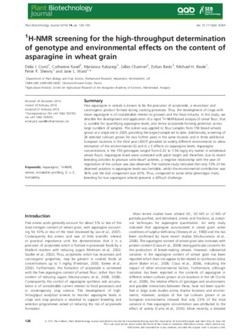 1H-NMR screening for the high-throughput determination of genotype and environmental effects on the content of asparagine in wheat grain