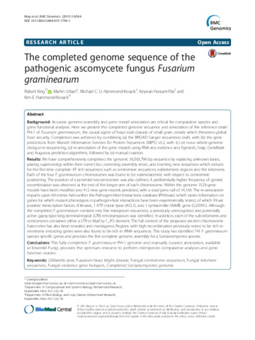 Conclusions This fully completed F. graminearum PH-1 genome and manually curated annotation, available at Ensembl Fungi, provides the optimum resource to perform interspecies comparative analyses and gene function studies.