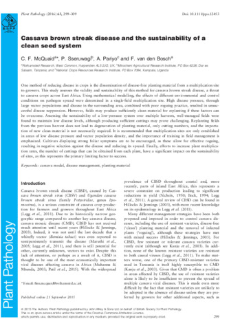 Cassava brown streak disease and the sustainability of a clean seed system