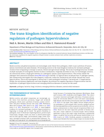 Modern society and global ecosystems are increasingly under threat from pathogens, which cause a plethora of human, animal, invertebrate and plant diseases. Of increasing concern is the trans-kingdom tendency for increased pathogen virulence that is beginning to emerge in natural, clinical and agricultural settings. The study of pathogenicity has revealed multiple examples of convergently evolved virulence mechanisms. Originally described as rare, but increasingly common, are interactions where a single gene deletion in a pathogenic species causes hypervirulence. This review utilised the pathogen–host interaction database (www.PHI-base.org) to identify 112 hypervirulent mutations from 37 pathogen species, and subsequently interrogates the trans-kingdom, conserved, molecular, biochemical and cellular themes that cause hypervirulence. This study investigates 22 animal and 15 plant pathogens including 17 bacterial and 17 fungal species. Finally, the evolutionary significance and trans-kingdom requirement for negative regulators of hypervirulence and the implication of pathogen hypervirulence and emerging infectious diseases on society are discussed.