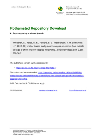 Dry matter losses and greenhouse gas emissions from outside storage of short rotation coppice willow chip
