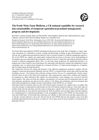 The North Wyke Farm Platform, a UK national capability for research into sustainability of temperate agricultural grassland management: progress and developments.