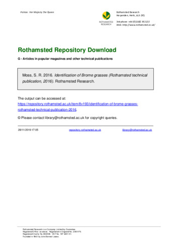 Identification of Brome grasses (Rothamsted technical publication, 2015).