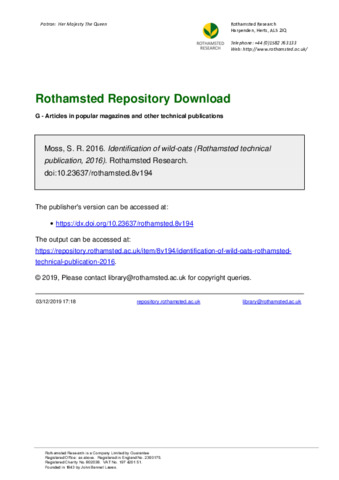 Identification of wild-oats (Rothamsted technical publication, 2016).
