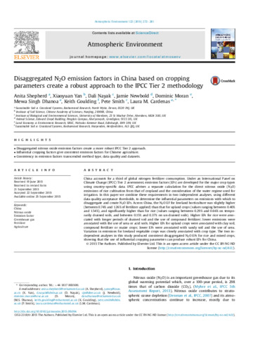 Disaggregated N2O emission factors in China based on cropping parameters create a robust approach to the IPCC Tier 2 methodology.