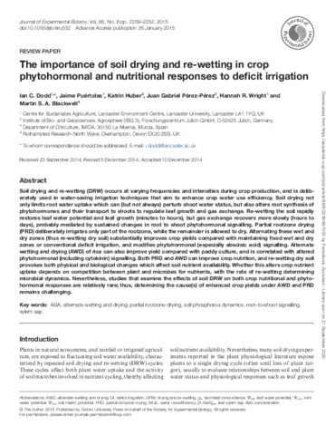 The importance of soil drying and re-wetting in crop phytohormonal and nutritional responses to deficit irrigation.