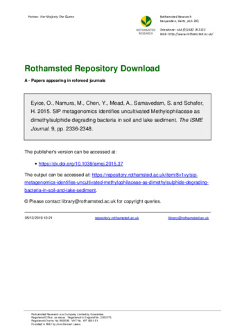 SIP metagenomics identifies uncultivated Methylophilaceae as dimethylsulphide degrading bacteria in soil and lake sediment.