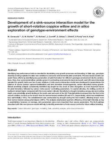 Development of a sink-source interaction model for the growth of short-rotation coppice willow and in silico exploration of genotype x environment effects.