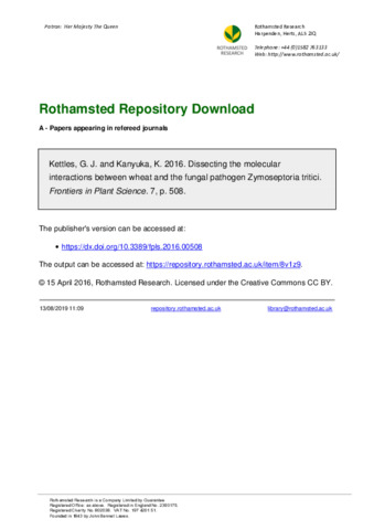 | Keywords | Septoria tritici blotch (STB), Mycosphaerella graminicola, effector, pathogen-associated molecular pattern (PAMP), chitin, disease resistance, PAMP-triggered immunity (PTI), wheat |