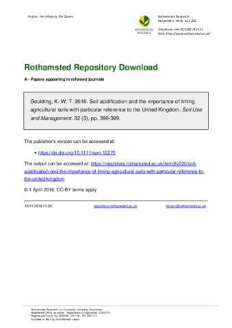 Soil acidification and the importance of liming agricultural soils with particular reference to the United Kingdom