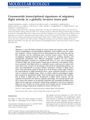 | Additional information | [Jones, Christopher M.; Lim, Ka S.; Chapman, Jason W.] Rothamsted Res, AgroEcol, Harpenden AL5 2JQ, Herts, England; [Papanicolaou, Alexie] Univ Western Sydney, Hawkesbury Inst Environm, Richmond, NSW 2753, Australia; [Mironidis, George K.; Vontas, John] Fdn Res & Technol Hellas, Inst Mol Biol & Biotechnol, GR-70013 Iraklion, Greece; [Vontas, John] Agr Univ Athens, Dept Crop Sci, Lab Pesticide Sci, GR-11855 Athens, Greece; [Yang, Yihua] Nanjing Agr Univ, Coll Plant Protect, Nanjing 210095, Jiangsu, Peoples R China; [Oakeshott, John G.] CSIRO, Ecosyst Sci, Canberra, ACT 0200, Australia; [Bass, Chris] Rothamsted Res, Biol Chem & Crop Protect, Harpenden AL5 2JQ, Herts, England; [Chapman, Jason W.] Univ Exeter, Environm & Sustainabil Inst, Penryn TR10 9EZ, Cornwall, England |