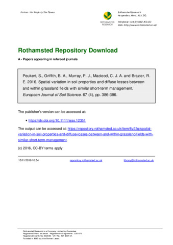 One of the major challenges for agriculture is to understand the effects of agricultural practices on soil properties and diffuse pollution, to support practical farm-scale land management. Three conventionally managed grassland fields with similar short-term management, but different ploughing histories, were studied on a long-term research platform: the North Wyke Farm Platform. The aims were to (i) quantify the between-field and within-field spatial variation in soil properties by geostatistical analysis, (ii) understand the effects of soil condition (in terms of nitrogen, phosphorus and carbon contents) on the quality of discharge water and (iii) establish robust baseline data before the implementation of various grassland management scenarios. Although the fields sampled had experienced the same land use and similar management for at least 6 years, there were differences in their mean soil properties. They showed different patterns of soil spatial variation and different rates of diffuse nutrient losses to water. The oldest permanent pasture field had the largest soil macronutrient concentrations and the greatest diffuse nutrient losses. We show that management histories affect soil properties and diffuse losses. Potential gains in herbage yield or benefits in water quality might be achieved by characterizing every field or by area-specific management within fields (a form of precision agriculture for grasslands). Permanent pasture per se cannot be considered a mitigation measure for diffuse pollution. The between-and within-field soil spatial variation emphasizes the importance of baseline characterization and will enable the reliable identification of any effects of future management change on the Farm Platform.