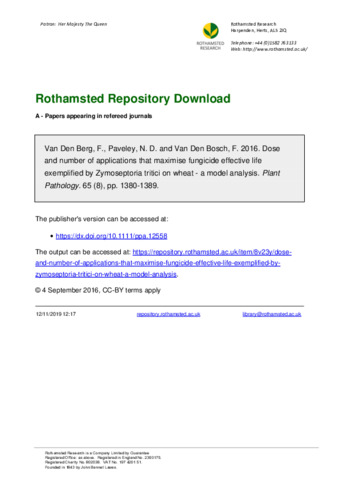 Dose and number of applications that maximise fungicide effective life exemplified by Zymoseptoria tritici on wheat - a model analysis