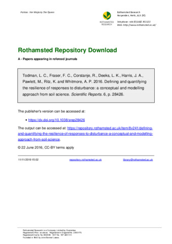 Defining and quantifying the resilience of responses to disturbance: a conceptual and modelling approach from soil science