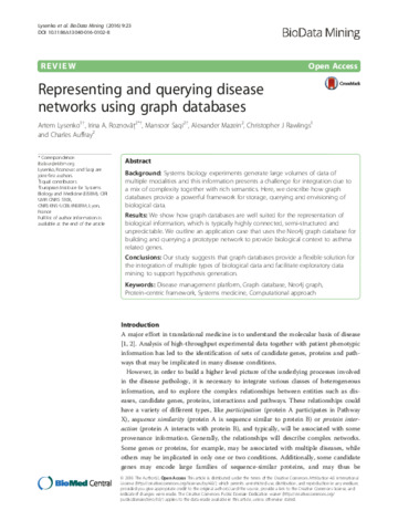 Representing and querying disease networks using graph databases.