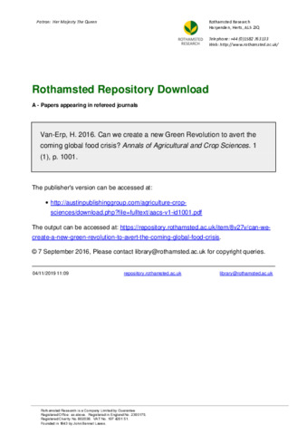 Annals of Agricultural and Crop Sciences, 1 (1).