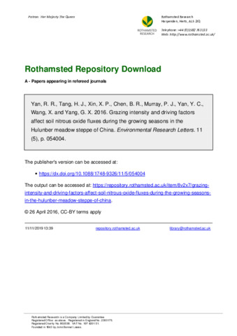 | Keywords | soil N2O fluxes, meadow steppe, grazing intensity, driving factor, response and mechanism |