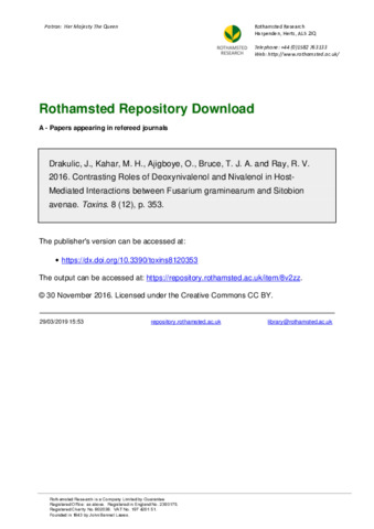 | Keywords | deoxynivalenol, nivalenol, trichothecenes, Fusarium head blight, aphids, volatiles |