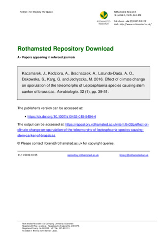 Effect of climate change on sporulation of the teleomorphs of Leptosphaeria species causing stem canker of brassicas.