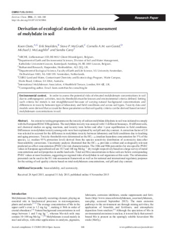 Derivation of ecological standards for risk assessment of molybdate in soil.
