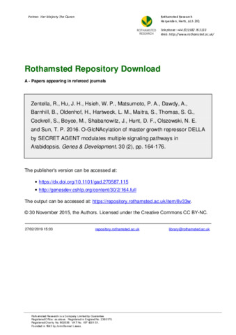 | Keywords | O-GlcNAcylation of DELLA, DELLA-interacting proteins, hormone signaling, gibberellin signaling, O-GlcNAc transferase, SECRET AGENT |