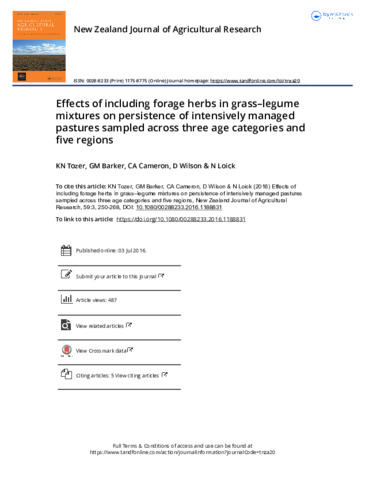 Effects of including forage herbs in grass-legume mixtures on persistence of intensively managed pastures sampled across three age categories and five regions