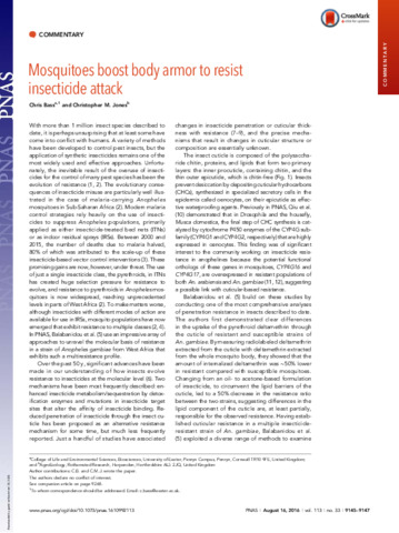Mosquitoes boost body armor to resist insecticide attack.