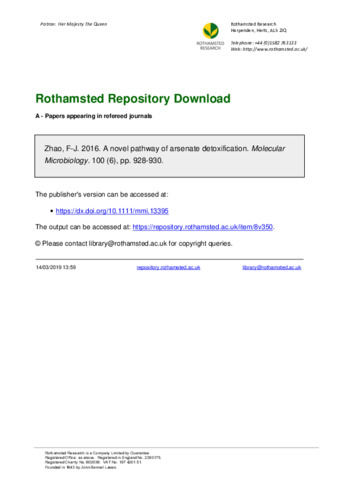 | Additional information | No Pink Form [Zhao, Fang-Jie] Nanjing Agr Univ, Coll Resources & Environm Sci, Nanjing 210095, Jiangsu, Peoples R China; [Zhao, Fang-Jie] Rothamsted Res, Harpenden AL5 2JQ, Herts, England |