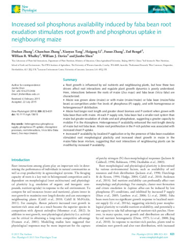 Increased soil phosphorus availability induced by faba bean root exudation stimulates root growth and phosphorus uptake in neighbouring maize