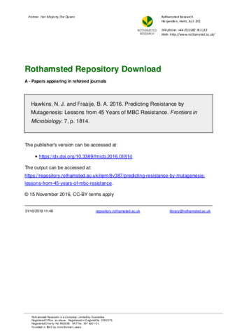 | Keywords | fungicide resistance, plant pathogens, benzimidazoles, mutagenesis, in vitro selection, predictability, fitness penalties, functional constraints |