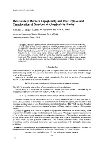 | Additional information | Presented at a symposium on Absorption and translocation of pesticides by plants on 30 April 1981, organised by the Physicochemical and Biophysical Panel of the Pesticides Group, Society of Chemical Industry. |