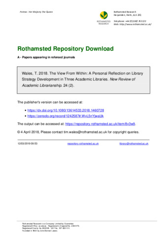 The View From Within: A Personal Reflection on Library Strategy Development in Three Academic Libraries.