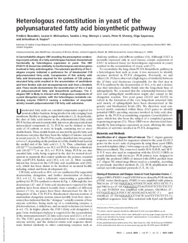 Heterologous reconstitution in yeast of the polyunsaturated fatty acid biosynthetic pathway.